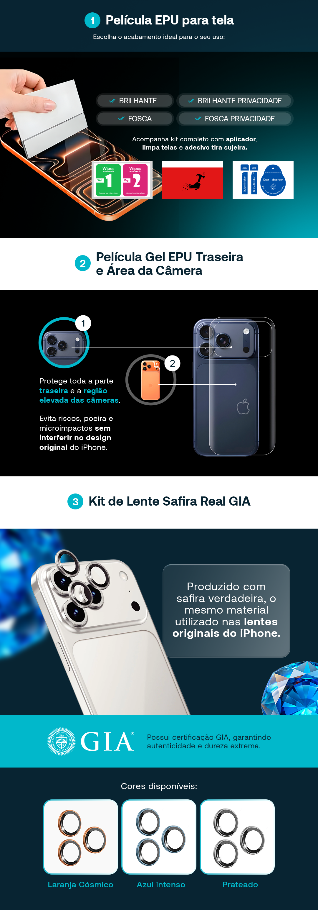 Combo Películas Envelopamento iPhone 17 Pro Max