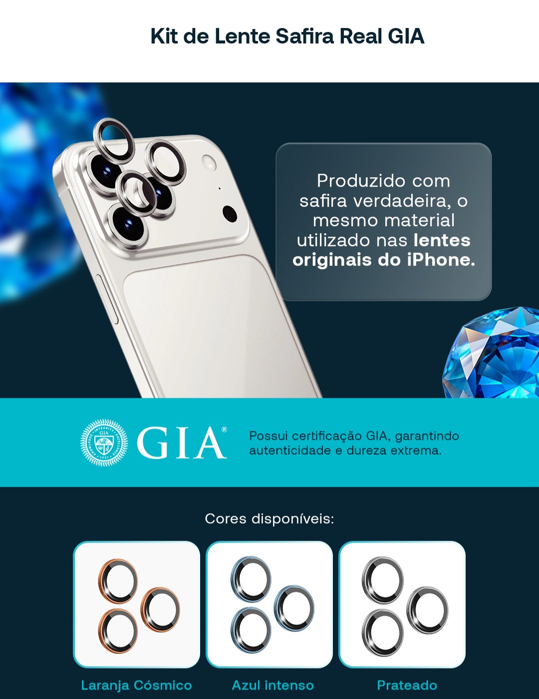 Kit Lentes Safira Real (Certificada GIA) iPhone 17 Pro