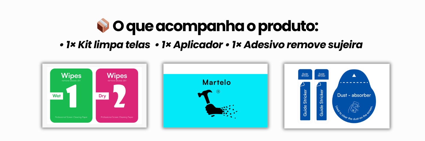 • 1 × Kit limpa telas (Passo 1 e Passo 2)